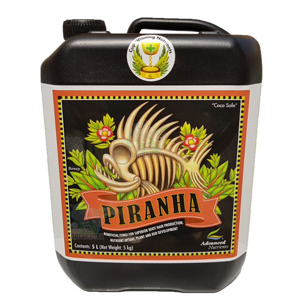 Advanced Nutrients Piranha, 8 tür trichodermia ve 18 tür endo ve ecto mikorizma mantarlarından oluşan faydalı mikroorganizmadır. Bitkilerin kök bölgesini sürekli gençleştirir ve inanılmaz bir bitki gelişimi sağlarken, köklerde büyüyerek sonsuz sayıda miselyum ağı oluşturur ve besin alımını çarpıcı şekilde arttırır. Mikoriza mantarları, mineral gübrelerin çözünmesini ve solüsyonun en iyi şekilde emilmesini sağlar ve zararlı bakteri türlerinin gelişimini bloke ederken, birbirine yapışmış toprak partiküllerini daha gözenekli bir yapıya dönüştürür. Mikoriza mantarları kök bölgesinde çoğalarak kök yüzeyini %700'e kadar arttırabilir.