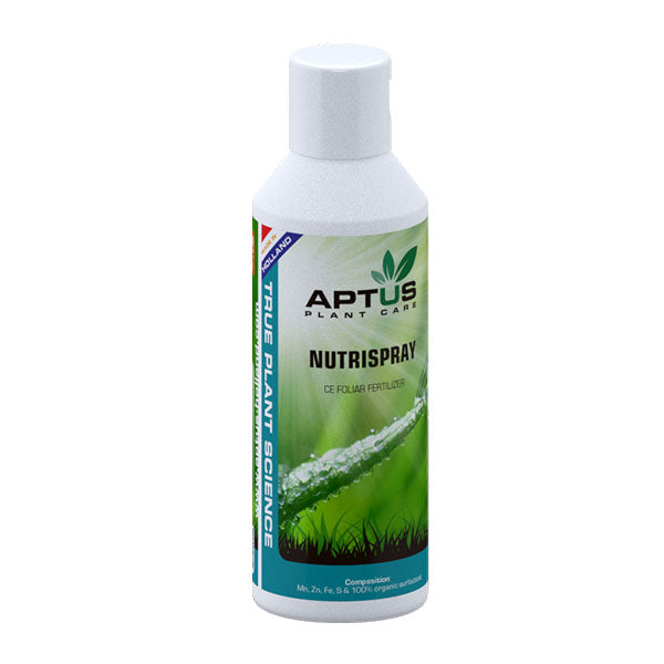 Aptus NutriSpray, yaprak gübresi olarak kullanılmak üzere doğal yüzey aktif maddelerin, uyarıcıların ve mikro elementlerin bir karışımıdır. Büyüme dönemi sırasında gerekli mikro elementleri sağlar, koruma ve besleme için yaprak üzerinde doğal bir kaplama bırakır. NutriSpray genel beslenme veya eksiklik düzeltmesi için kullanılabilir.