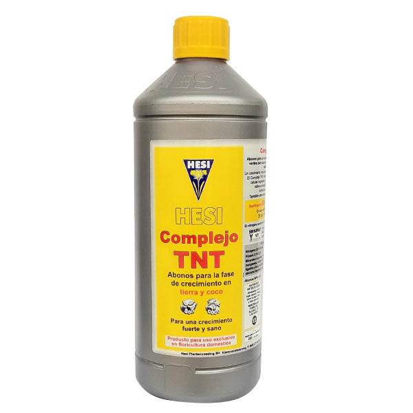TNT Complex, bitkilerin büyüme döneminde toprakta kullanılan, bitkilere nazik olan çok güçlü bir büyüme gübresidir. Hesi TNT Kompleksinde kullanılan azot% 100 organiktir (Üre). Organik azot bileşiklerinin EC değeri yoktur, çünkü bunlar tuz değildir, ancak yüksek oranda azot içerirler. Bu nedenle genç bitkilere ideal yetiştirme koşulları sağlayan minimum miktarda tuz yüklenir. Hesi TNT Complex düşük bir EC değerine sahiptir fakat etkisi çok yüksektir. Gerekli tüm besin maddelerini içerir ve başarılı bir büyümeyi garanti eden birçok önemli bileşenle (vitaminler, amino asitler, bitki aktif şekerleri) zenginleştirilmiştir.