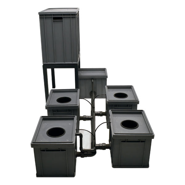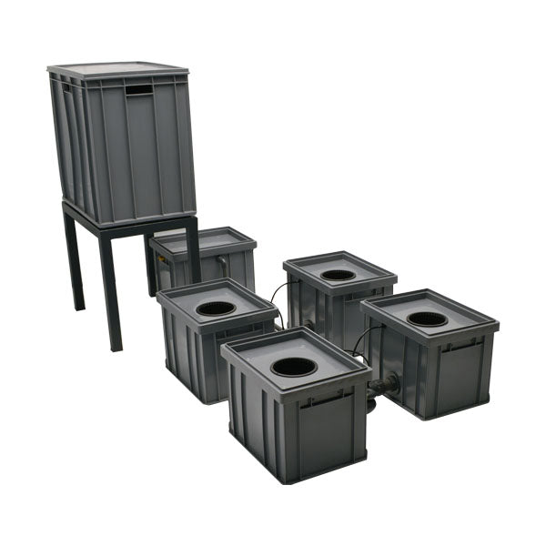 RDWC hidroponik sistemini kullanarak maksimum büyüme potansiyelini optimize edebilirsiniz. Süper oksijenli besin solüsyonu sistemin içinde sürekli olarak dolaşır. Pompa, çözeltiyi kaplardan çekerek besinleri karıştıran bir su akımı oluşturur. Bu akım aynı zamanda köklere hayati besinleri iletir, kök sağlığını optimize eder ve besin alım verimliliğini arttırır. Daha da önemlisi, sistemde bulunan yüksek su hacmi nedeniyle PH ve EC seviyeleri sürekli olarak korunur.