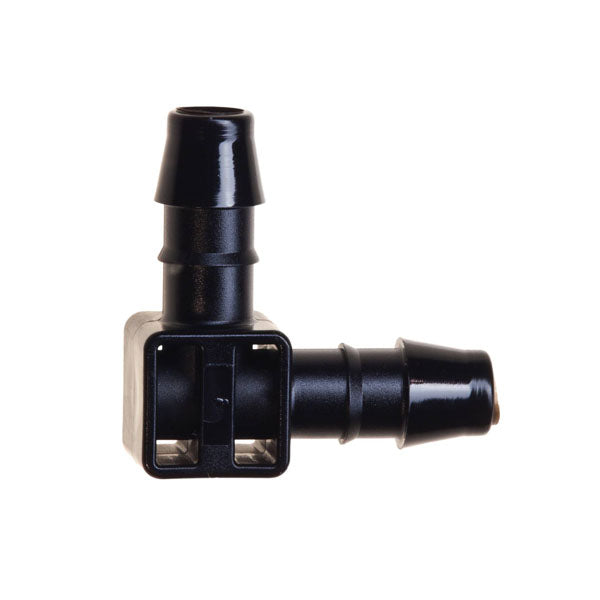 Blumat sulama sisteminin L bağlantı aparatı, 8 mm ana hattını döndürmek için kullanılır.
