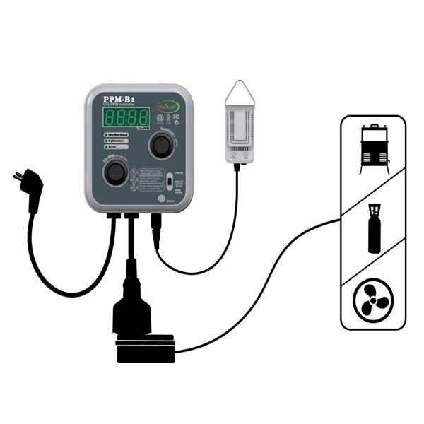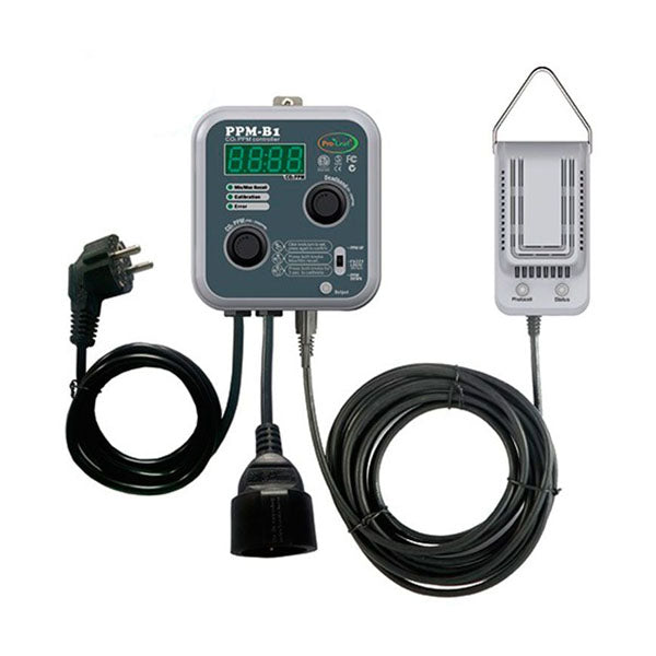 Pro leaf PPM-B1 dijital Co2 kontrolörü, ortamdaki karbon dioksit oranını istenilen değerde tutmak için kullanılan kontrolördür .CO2 takviyesi için sıkıştırılmış gaz kullanırken ek doğruluk sunan Fuzzy Logic işlemine sahiptir. +/- 100 PPM doğruluk ile 400-2000 PPM arasında ayarlama yapmanızı sağlar. 4,5 m uzunluğundaki sensör, ppm seviyelerini doğru bir şekilde izler ve bu bilgiyi gerçek zamanlı olarak görüntülenmesi için kontrolöre iletir. Entegre bir fotosel, gündüz, gece veya sürekli çalışmaya izin verir ve daha sonra görüntülemek için maksimum ve minimum değerleri kaydeder.