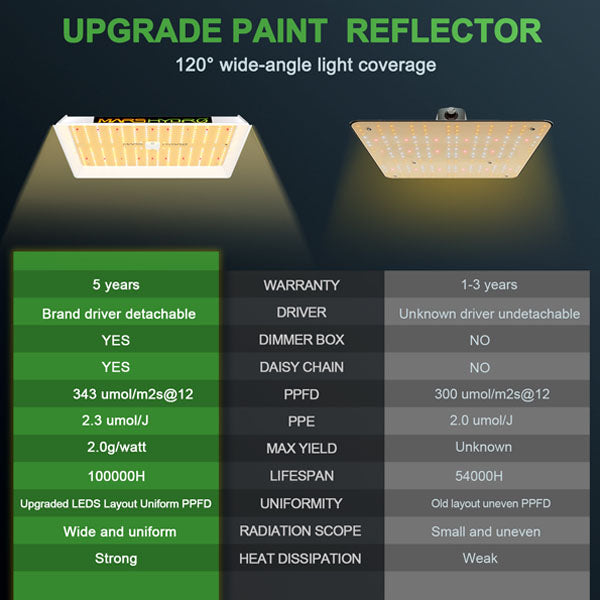 Full Spectrumdur, 660-665nm Kırmızı, IR 730nm, 3200-4200K, 5200-6800K, doğal ışığa yakın, mükemmel büyüme ve çiçeklenme dönemi sağlar. Tohumdan hasata hızlı bitki tepkisi, verimi ve mahsul kalitesini artırır.