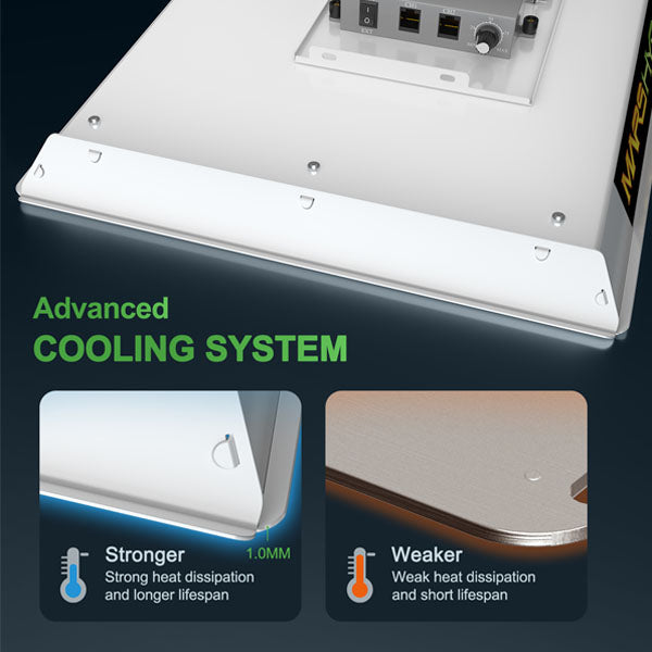 Yüksek Yansıtıcı ve gürültüsüz fansız bitki yetiştirme lambası, ısıyı hızla dağıtan alüminyum malzemeden üretilmiştir. Işık yoğunluğunu %20'ye kadar arttırarak bitkilerinizin daha fazla enerji almasını sağlar.