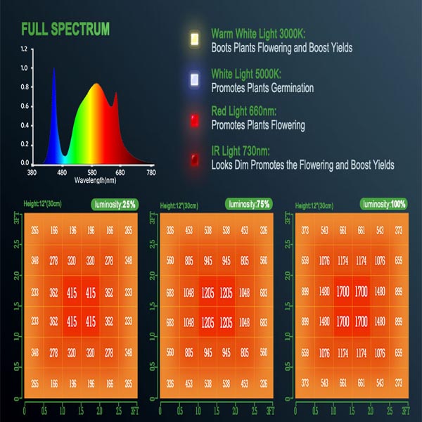Spectrum: 660-665nm 730-740nm 3000-3200K 6000-6500K