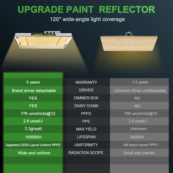 MarsHydro TSW2000, iç mekan yetiştiriciliğinde yüksek verim, düşük enerji tüketimi ve tam spektrum ışık performansı arayan kullanıcılar için tasarlanmış güçlü bir LED grow light sistemidir. 300W gerçek güç tüketimiyle, geleneksel 450W HPS/MH lambaların verimini yakalar ancak çok daha düşük enerjiyle çalışır. Hem hobi yetiştiricileri hem de profesyoneller için ideal bir seçimdir.