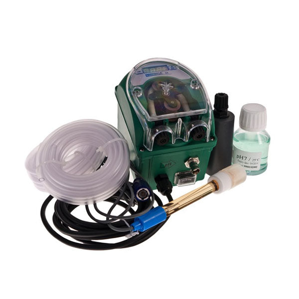 Otomatik pH seti, solüsyonununuzdaki ph seviyesini sürekli olarak belirlediğiniz değerde sabit tutar. Büyük sistemlerde, ufak ölçekli hobi seralarda kullanımı uygundur. Cihazdan gelen bir hortum sisteminizin rezervuarına, diğer hortum ise ph düşürücü solüsyona bağlanır. Rezervuarınıza bağlanan diğer bir ölçüm bağlantısı, solüsyonunuzu sürekli olarak ölçerek cihaza iletir ve cihaz tarafından gereken ph miktarı rezervuarınıza pompalanır.