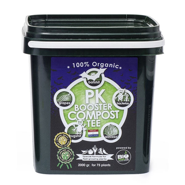BioTabs PK Booster Tea, son derece konsantre bir çay kompostu karışımıdır. Yarasa gübresi, valek, P bırakıcı bakteriler, K harekete geçiren bakteriler ve seçilmiş özel malzemeler içerir. İçerdiği tüm maddeler 24-36 saat demlenme işlemi yapılarak sulamaya hazır hale gelir.