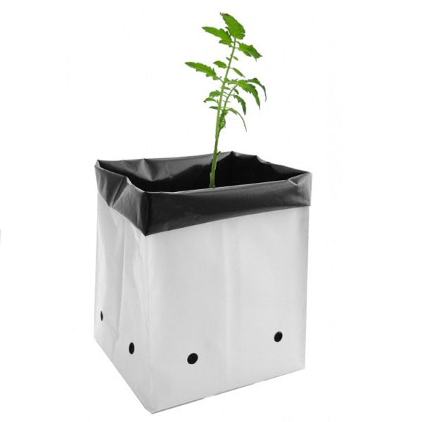 Poşet saksılar kullanımı pratik ve ucuzdur. Işığı yansıtmak için dışı beyaz, kök bölgesine ışık almaması için içi siyahtır. Alt tarafında iyi drenaj sağlamak için delikler mevcuttur.
