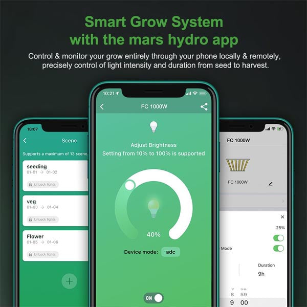 Mars Hydro FC serisi, mükemmel ışık dağılımıyla yetiştirme alanınızın her köşesini aydınlatır. Mahsül kalitesini ve ağırlığını artırır. Ayarlanabilir ışık şiddeti sayesinde tüm dönemlerde güvenle kullanılır. 100x100 kabin için mükemmeldir. Yetiştirme çadırında kullanıldığında ışık enerjisi % 90'ın üzerinde bitkiler tarafından emilebilir.